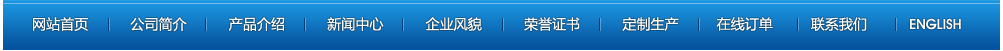 網站首頁 | 公司簡介 | 產品介紹 | 新聞中心 | 企業(yè)風貌 | 榮譽證書 | 定制產品 | 在線訂單 | 聯(lián)系我們 | ENGLISH 【后臺管理】